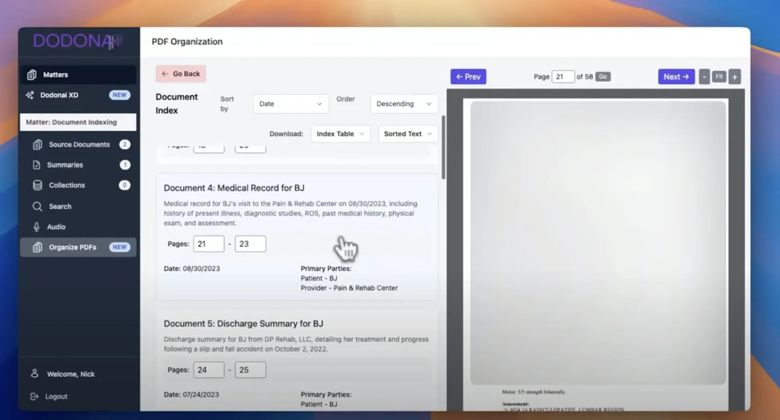 With Dodon.ai: Instead of flipping through hundreds of pages, you can search and filter chronologies instantly - by provider, date, or event type - making strategic analysis faster.