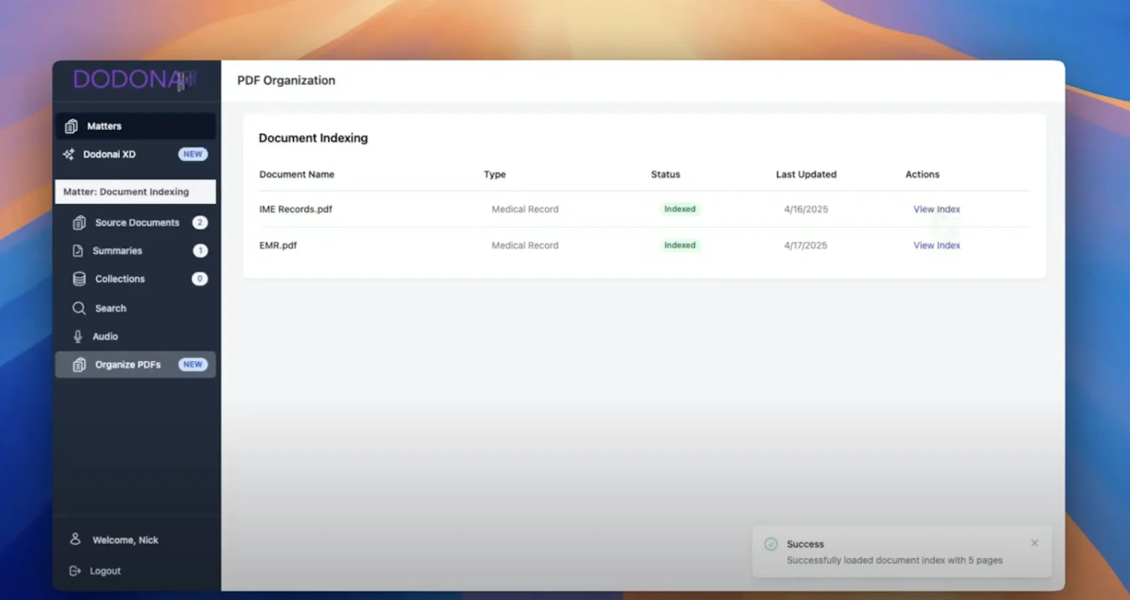 PDF Organization on Dodon.ai