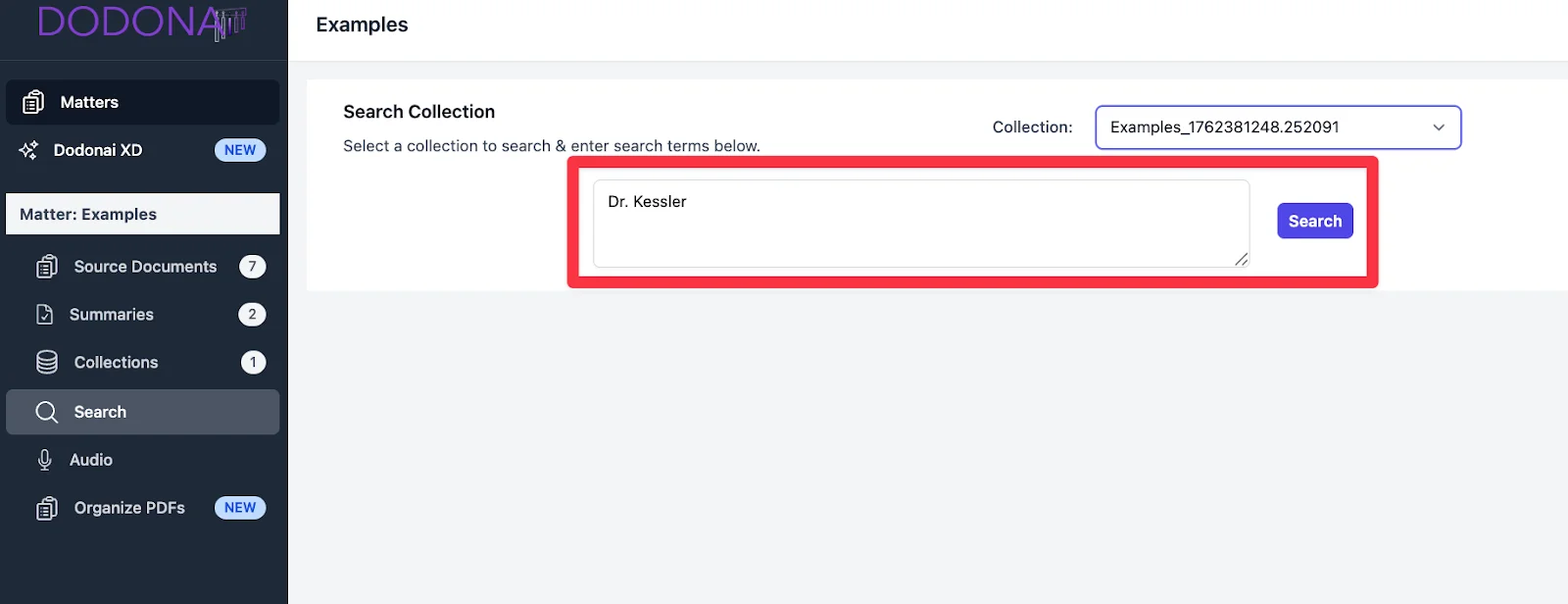 - Search Collection – keyword search across grouped documents